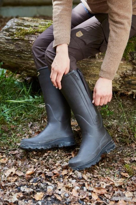 Les bottes en caoutchouc avec fermeture éclair et doublure en néoprène Parforce, sont fabriquée en caoutchouc naturel et offrent une parfaite étanchéité. Même après une longue journée de chasse les pieds dans l’eau, vos pieds restent secs et chauds. La semelle robuste offre de très bonnes propriétés d’amortissement, un maintien sûr et confortable, même sur de longues distances. Grâce à la doublure en néoprène de 4 mm, vos pieds sont protégés du froid, même à basse température. Cette botte est donc également recommandée, si vous devez rester statique dans un environnement froid. La fermeture éclair latérale imperméable à l’eau est facile à manipuler. Elle facilite l’enfilage des bottes, surtout si vous souhaitez y rentrer votre pantalon. Il est conseillé de commander vos bottes, dans une pointure supérieure à celle que vous portez habituellement, si vous souhaitez enfiler des chaussettes épaisses. Ces bottes sont un excellent rapport qualité prix qui n’a rien à envier aux produits similaires des grandes marques.