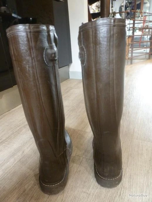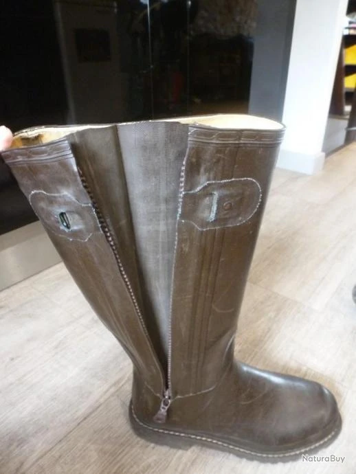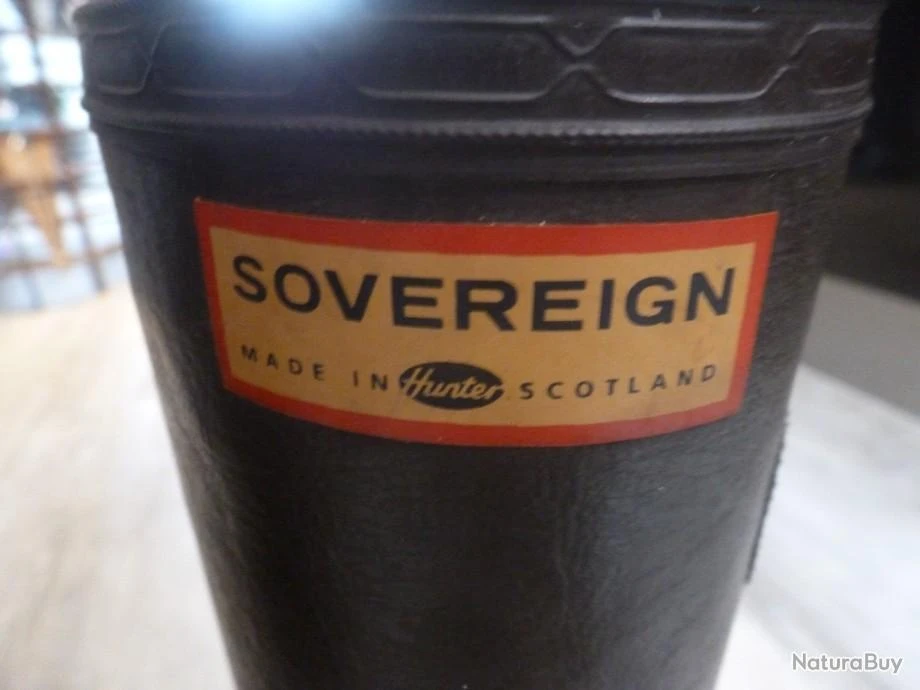 Botte de chasse Sovereign made in Scotland taille 43 intérieur cuir très peu servi en très bon état . J’ai supprimé la petite languette sur le côté , ça géné plus qu’aute chose .
